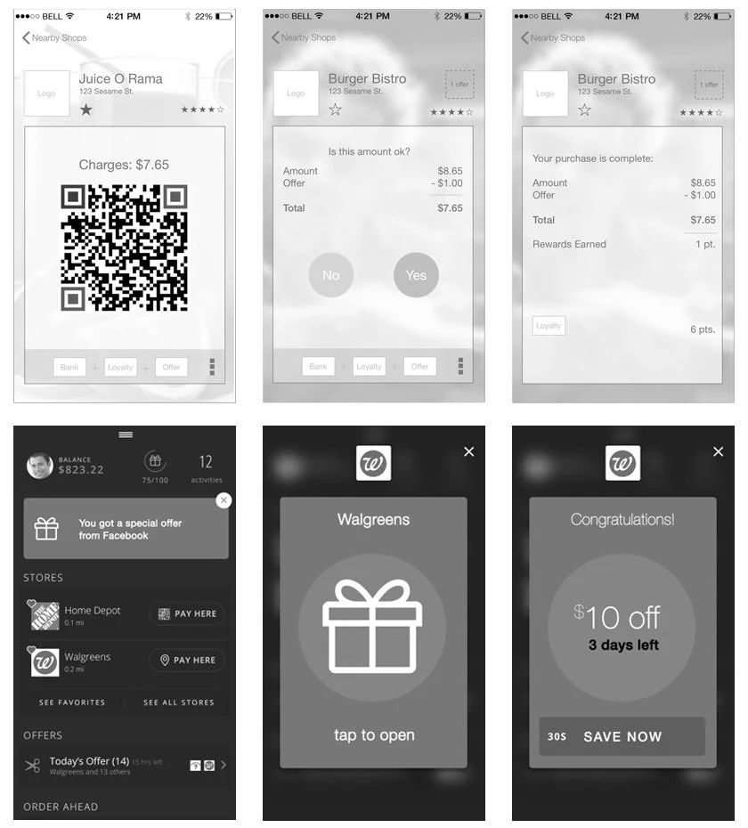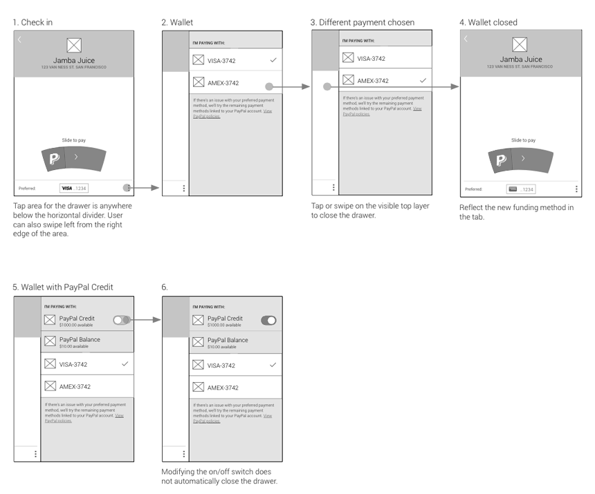 I lead a small design team working with Product and Strategy leadership to develop a strategic story and visualize concepts around our ideas of a more fluid payment experience and smarter spending with PayPal. One of the new technologies we were working with as a company was low-energy Bluetooth to automate functions within the app before human interaction. These are some visualizations I did of the app functions and interactions during payment.